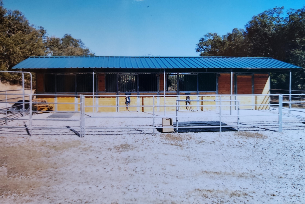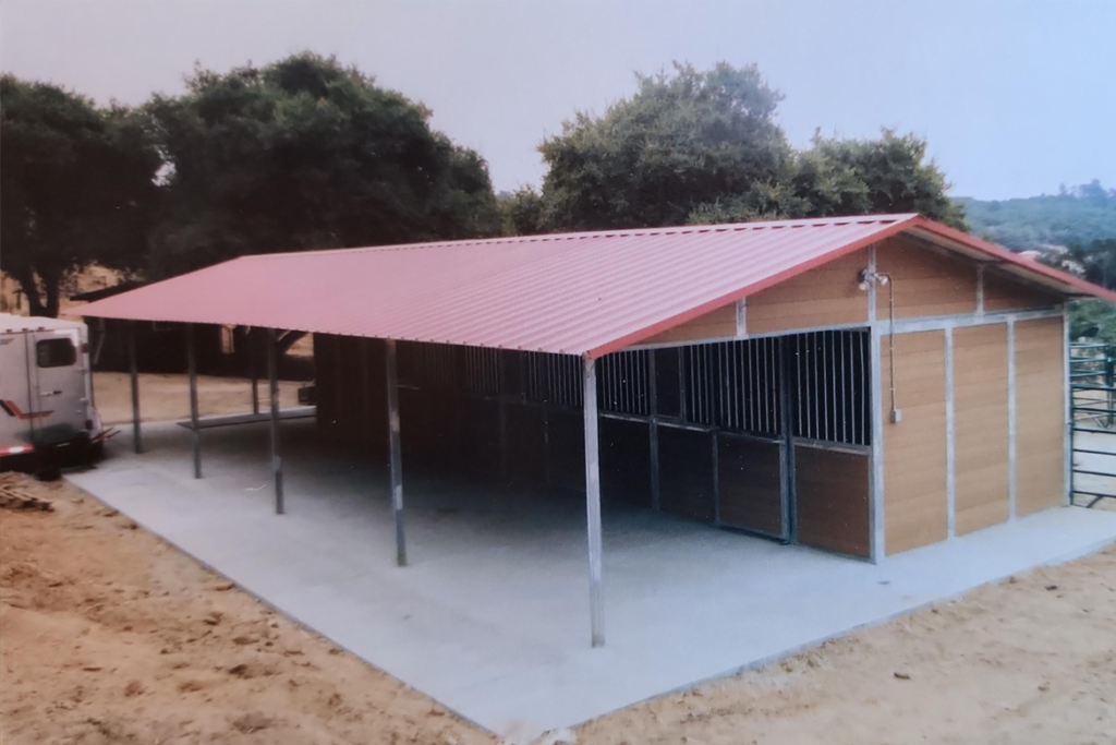 Maximum ventilation is guaranteed with the Shedrow barn style. The open design is ideally suited to long, narrow barn sites. The stall fronts are protected by the standard 4’ overhang with additional overhang available in 2’ increments out to 12’.